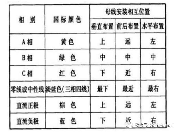 開關柜母線相序位置與國家標準顏色比較如表所示