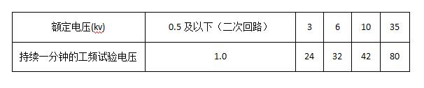 10.一次和二次電路及其電器的絕緣強(qiáng)度應(yīng)能承受1分鐘的工頻耐壓試驗(yàn)而不擊穿或閃絡(luò)。電源頻率測試檢查電壓值見下表。