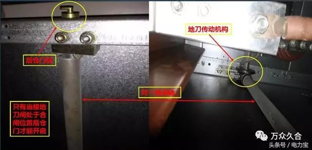 只有當接地開關處于關閉狀態時,開關柜的下門或電纜室的后密封板才能打開,只有當電纜室的后密封板關閉時,接地開關才能打開。