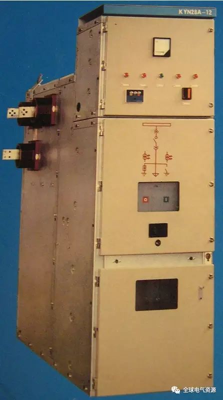 KYN28A(GZS1)中央機柜為10kV開關(guān)柜型,較常用于城市地區(qū)變電站型。從前面看,它顯然分為三部分,頂部是繼電器室,中間是斷路器室,底部是空室(什么也沒有)。母線等高壓設(shè)備安裝在柜體后部。如圖1所示。