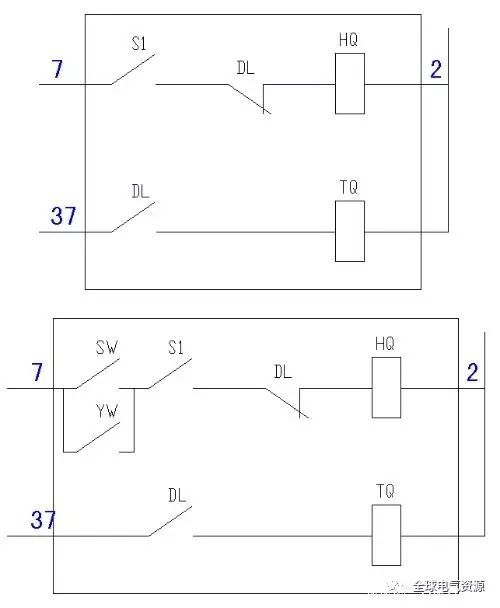 圖10為操作回路,主要包括控制手柄、微機操作回路和斷路器機構(gòu)的配合。請把圖片放大一點(點擊查看大圖)。在許多簡圖中,斷路器機構(gòu)的合閘回路通常如圖11所示:“彈簧儲能S1常開”、“斷路器分閘DL常關(guān)”、“合閘線圈HQ”串聯(lián),或增加“試驗位置SW和操作位置YW常開且并聯(lián)”來表示“斷路器手車只能在試驗位置和操作位置閉合”。事實上,VS1斷路器通常配備有閉合鎖定電磁鐵,該電磁鐵由手車行程開關(guān)(類似于繼電器)控制。當手車處于測試位置和操作位置以外的位置時,電磁鐵斷電,其輔助觸點斷開閉合電路。這屬于中央機柜的電氣鎖定(中央機柜還有許多其他電氣鎖定,例如通電時無開口開關(guān)柜后門等)。)。