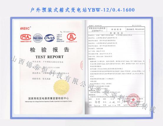 目前,我公司有兩種由國家高低壓電器質(zhì)量監(jiān)督檢驗中心出具的試驗報告,即室外預裝箱式變電站(型號:YB端口-12/0.4-1600)和鎧裝可拆卸交流金屬封閉開關設備(型號:/1250-31.5)。以下是一些掃描: