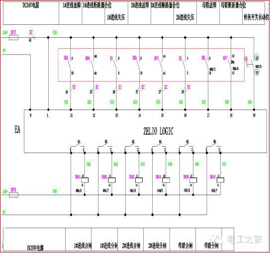 自動(dòng)時(shí):由于低壓進(jìn)線開(kāi)關(guān)不使用欠壓(失壓)線圈,該模塊用于在失壓時(shí)控制進(jìn)線開(kāi)關(guān)的打開(kāi)和關(guān)閉。三個(gè)聯(lián)鎖斷路器的電源都來(lái)自母聯(lián)柜。按鈕由中間繼電器代替,其他聯(lián)鎖步驟與手動(dòng)相同。