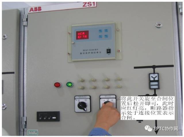 1.操作儀表板打開和關閉,并關閉開關,將斷路器置于關閉位置。同時,儀表板上的紅燈熄滅,綠燈亮,關閉成功。