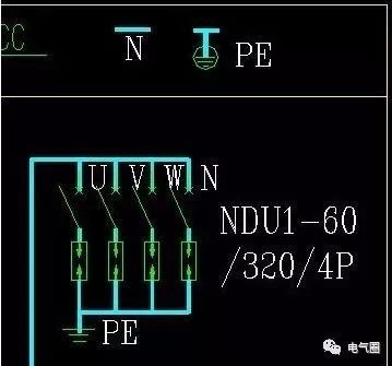 這部分表示PE接地,并且在方框中有一個零線行。